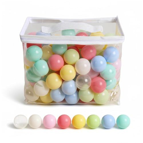 Hugmuu カラーボール 5.5cm ボールプール ベビー 赤ちゃん 8色 パステル (100個, 8カラー)