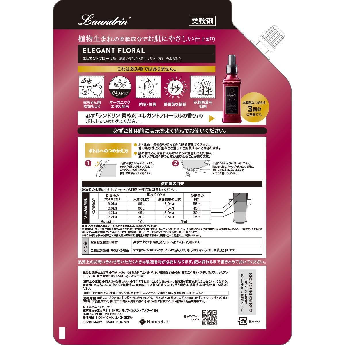Laundrin'(ランドリン) 柔軟剤 特大容量 エレガントフローラル 詰め替え 3倍サイズ 1440ml