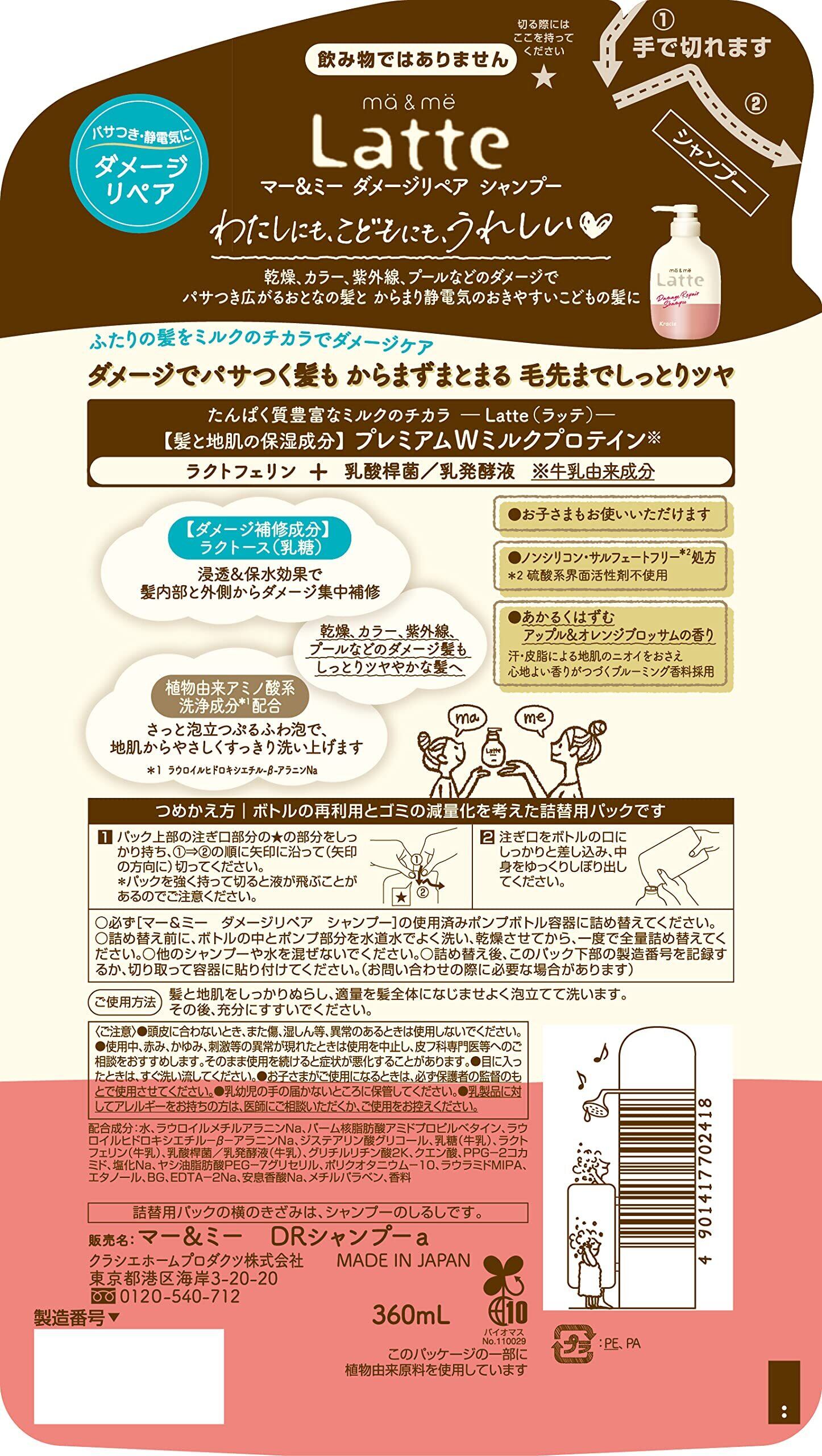 マー&ミー 【ダメージリペア】 親子で使える シャンプー 詰め替え 360ml×3 セット おまけ付き | ノンシリコン アミノ酸シャンプー ママ ベビー キッズ 子供 赤ちゃん ヘアケア ラッテ