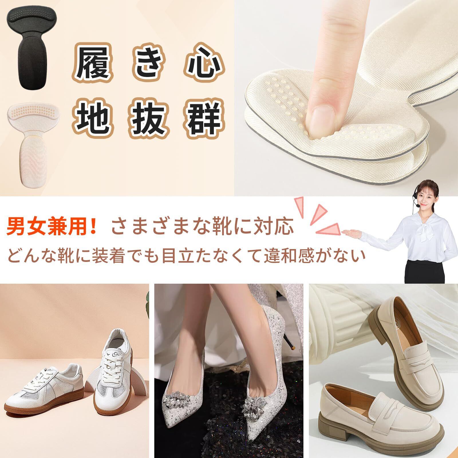 靴擦れ防止、パンプス脱げ防止、大きすぎる靴対策、衝撃吸収