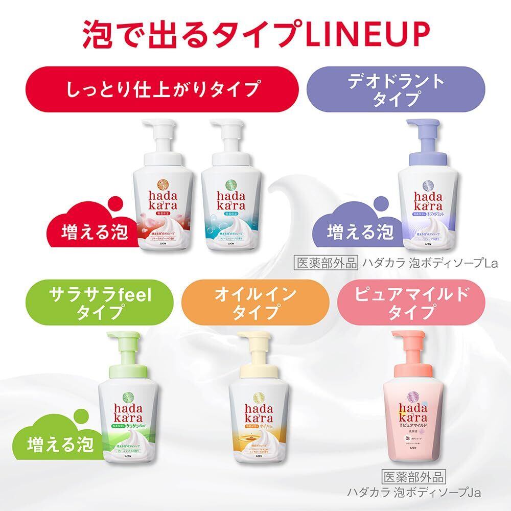 1プッシュで特大もっちり泡が出てくる「ハダカラ泡ボディソープ」が、どんな洗い方の人でも気持ちよく洗える。洗っている間に 濃密泡がもこもこ増え続けて、全身保湿ができる「増える泡ボディソープ」に生まれ変わりました!手で洗いたい人はもちろん、タオルで洗いたい人にもおすすめ。