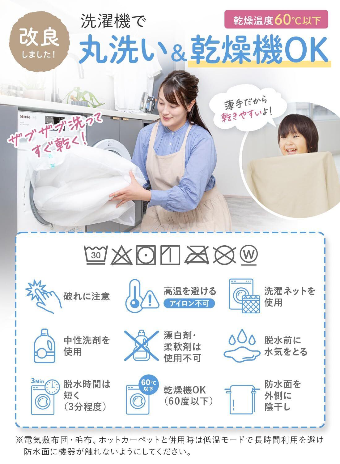 【丸洗い&乾燥機OK】洗濯ネットを使用すれば、洗濯機で丸洗い&乾燥機使用OK(上限60℃まで)!簡単に取り外し&洗濯できるので、汚れが気になったらサッと洗って乾かせます!お手入れしやすい家事ラク仕様です。 四隅のコーナーにはズレ防止のゴムバンドが付いているので寝返りをうっても安心です。洗濯したい時はさっと取れるので忙しい朝もスムーズで楽ちんです。