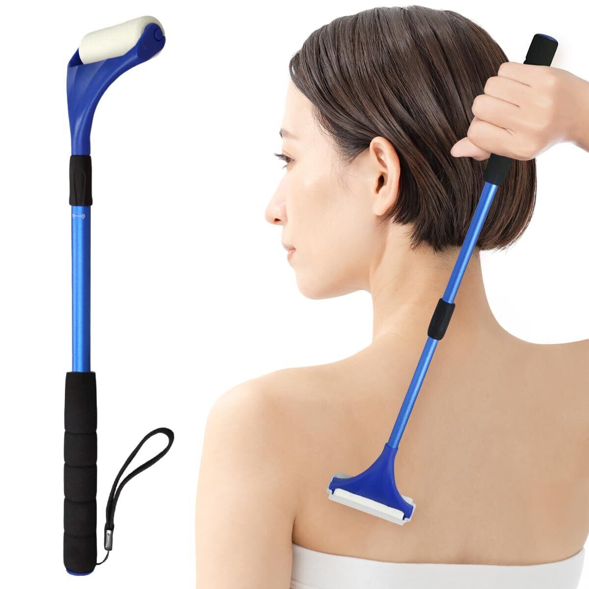 背中 塗る ローションアプリケーター AK-5007 背中クリーム棒 伸縮自在 ヘッド交換可能 届かない場所 ローション 腰 日焼け止め (ブルー)