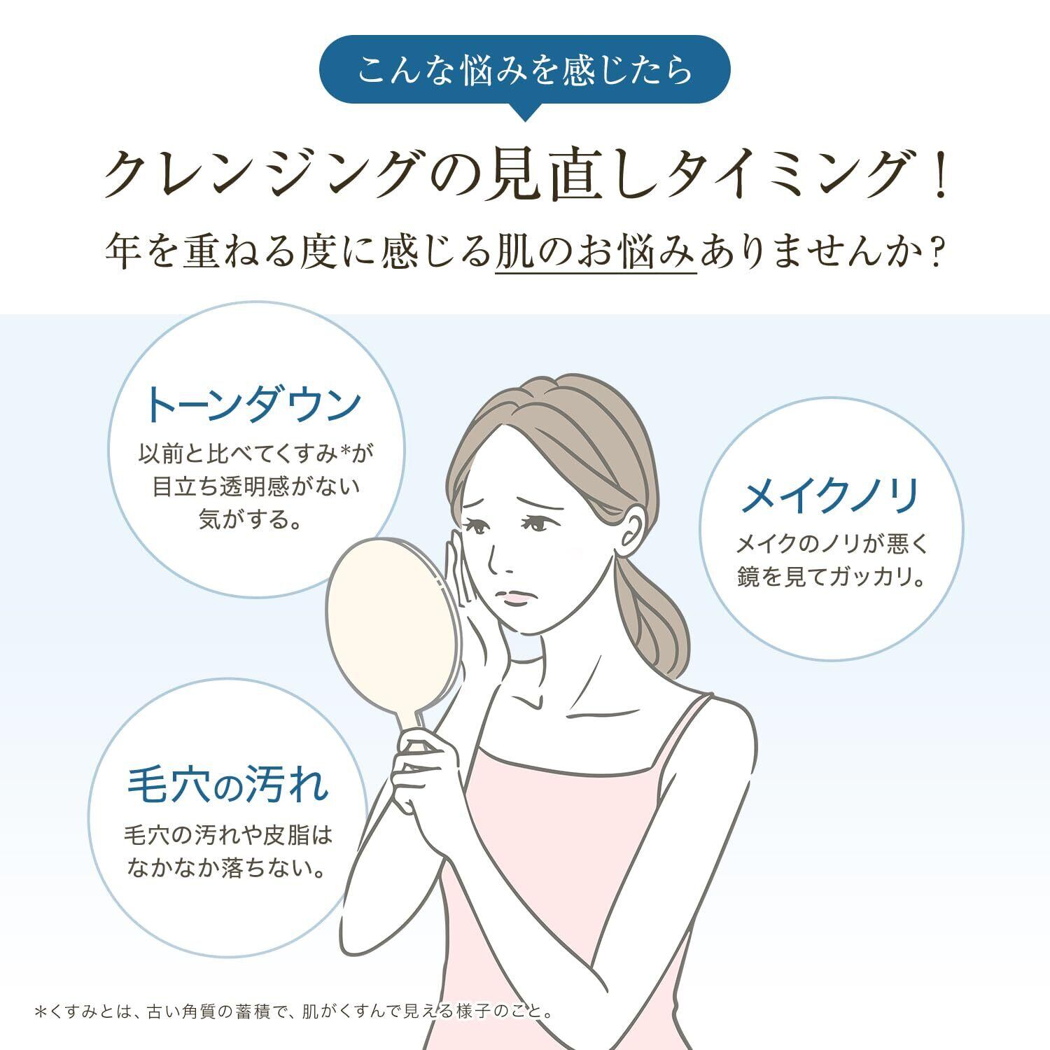 【しっとりとした洗い上がり】エイジングケアを見据え、8種の天然植物オイルを厳選。明るくやわらかな素肌へ洗い上げます。多角的なくすみ*ケアはもちろん、毛穴・角栓ケアのためのメドウフォームオイル、保湿・柔軟ケアのためのインカオメガオイルも配合しました。クレンジングオイルタイプが苦手な方にもおすすめです。*年齢による古い角質の蓄積で肌がくすんで見える様子のこと。