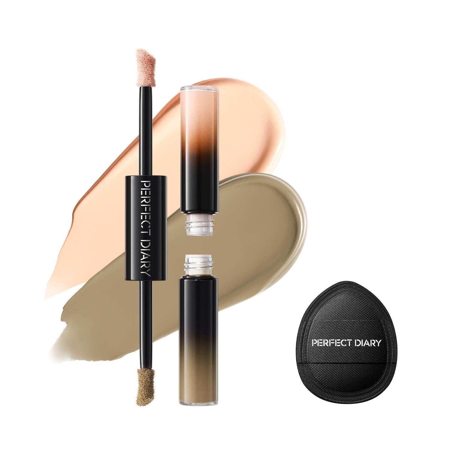PERFECT DIARY パーフェクトダイアリー ハイライト&チーク 両頭マルチスティック|輪郭マルチスティック 多機能 鼻影&ハイライト 自然な立体感 小顔メイク(03 サーモンベージュ&グレージ