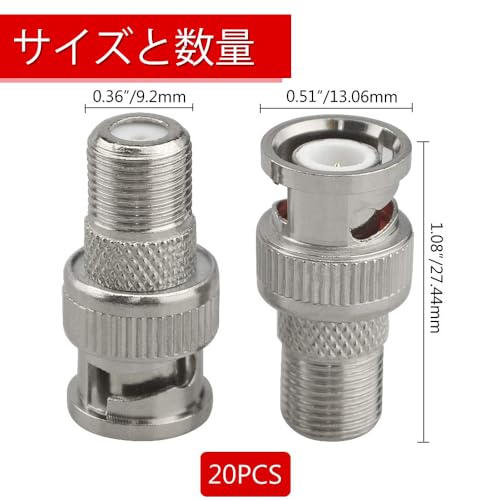 WMYCONGCONG F型 BNC 変換 コネクタ 20個セット BNCオス - Fメス 変換プラグ アダプタ 防犯カメラ 同軸ケーブル 監視カメラ用 CCTVなど 接続用