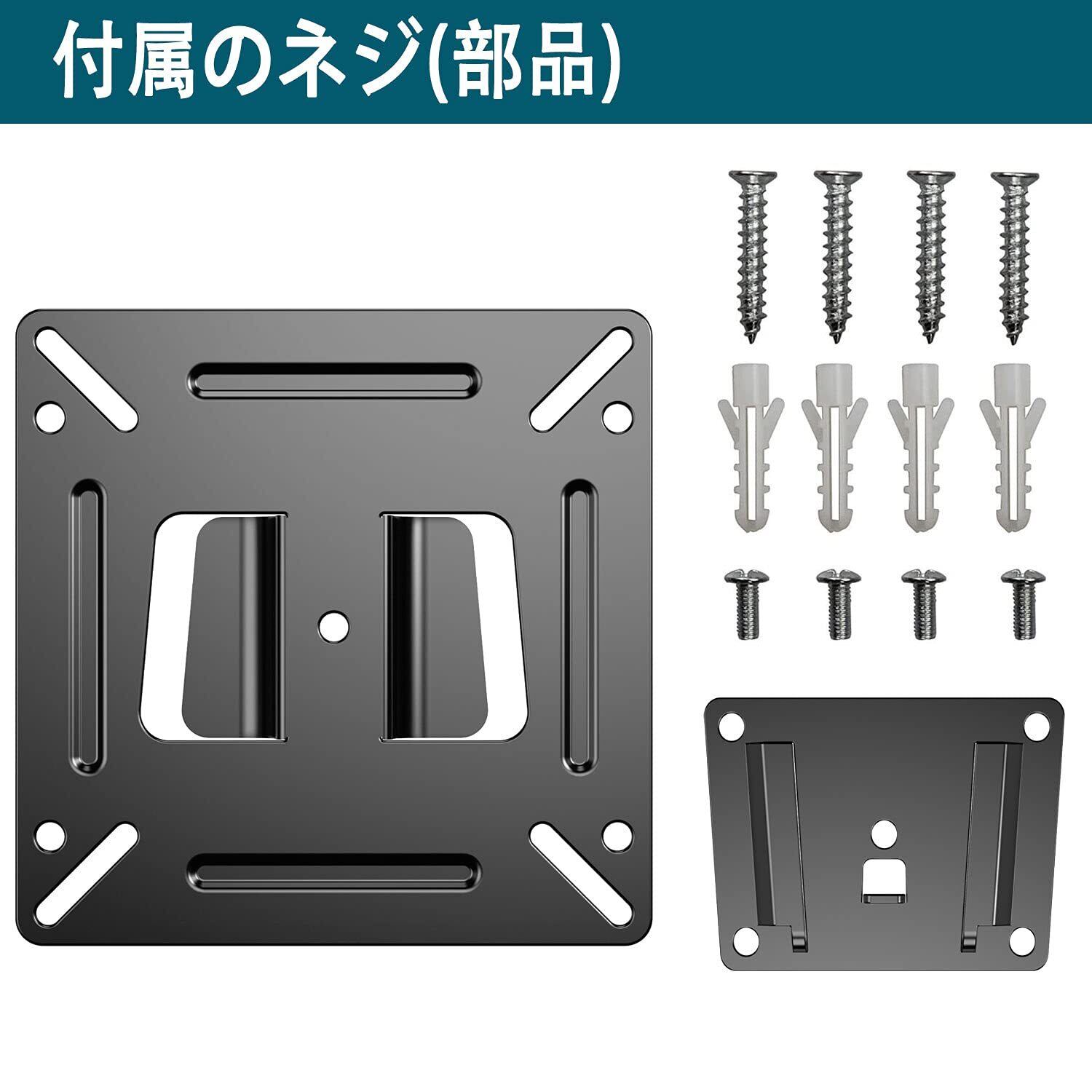 テレビ 壁掛け金具14~24インチ液晶テレビ・PCモニター用 薄型固定式ビス付き 対応VESA規格100X100mm 耐荷重15KG モニター かべかけ 金具