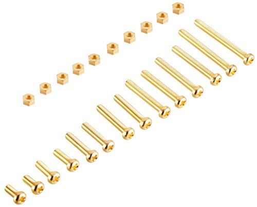 ◆形式 カートリッジ取り付け用ボルト・ナット ◆セット内容 M2.6ボルト 長さ6, 8, 12, 15, 18, 20, 25mm各2本 M2.6 対辺4mmナット10個 ◆材質 真鍮・非磁性下地処理、24金メッキ仕上げ 一般的に使用されるアルミ製のネジは強度が低く音質上もデメリットが多いようです。BT-2はそのような場合に使用できる真鍮製のボルトとナットのセットです。ボルトは長さが7種類それぞれ2本づつと対辺4mmのナットが10個セットになっています。これらの長めのネジを使用して別発売のWA-1と組み合わせてヘッドシェルとカートリッジを含めた重さを調整することも可能です。微調整にはナットの個数やボルトの長さを調整するとヘッドシェル部の重さを統一することが可能になり使いやすくなります。カートリッジとヘッドシェルの合計の重さを統一しておくとカーリッジ交換時に針圧調整の必要がなくなりカートリッジ交換がしやすくなります。BT-2に付属していますナットは対辺が4mmと小さくなっており、カートリッジボディーの溝部分にも無理なく使用することができます。下記に各部材の重さを記しておりますので重量調整の参考にしてください。