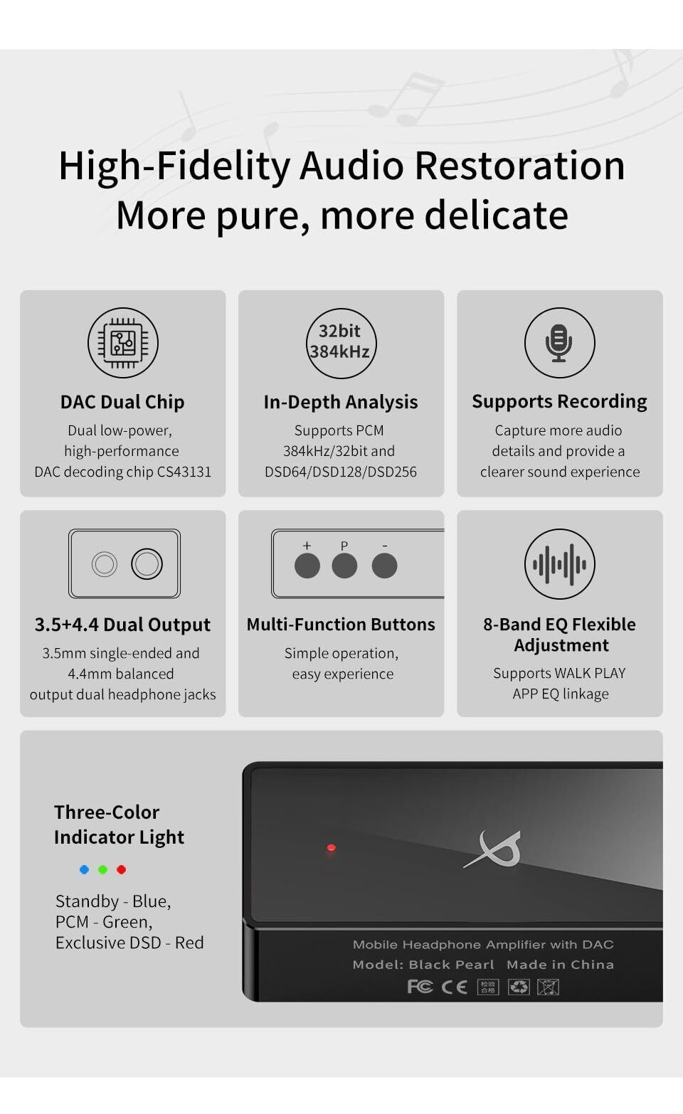 TRN BlackPearl 小型アンプ DAC スマホ AMP 【ハイレゾ対応】 32bit/384kHz DSD256 チップCS43131 イヤホンアンプ ポータブル ヘッドホンアンプ Type