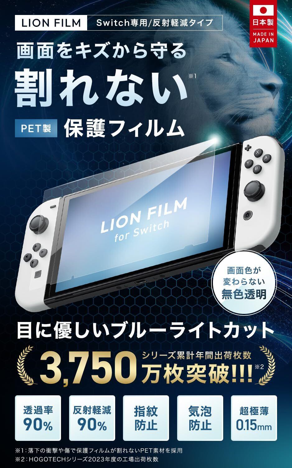 LION FILM【日本製 割れない】switch 保護フィルム ブルーライトカット HOGOTECH(有機ELモデル対応)