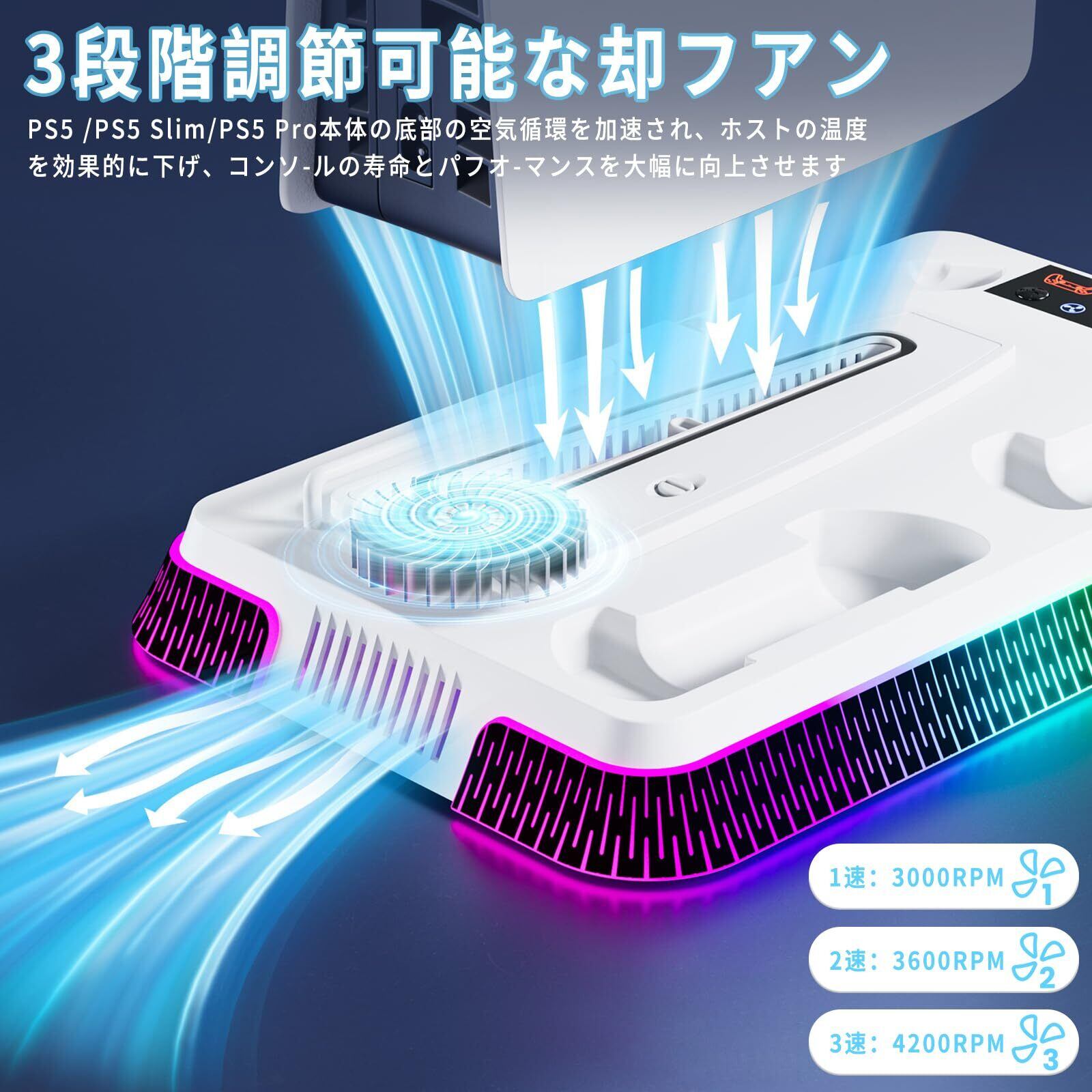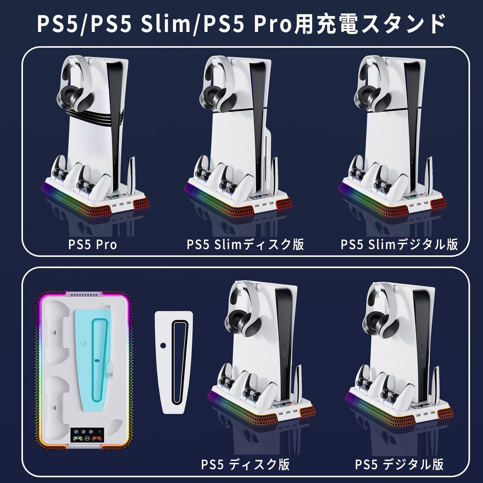 PS5 Pro/PS5/PS5 Slim対応 縦置きスタンド 【新登場 PS5 pro/slim対応】ps5 コントローラー 充電スタンド 多機能冷却ファン充電スタンド 同時充電 充電指示ランプ付 R