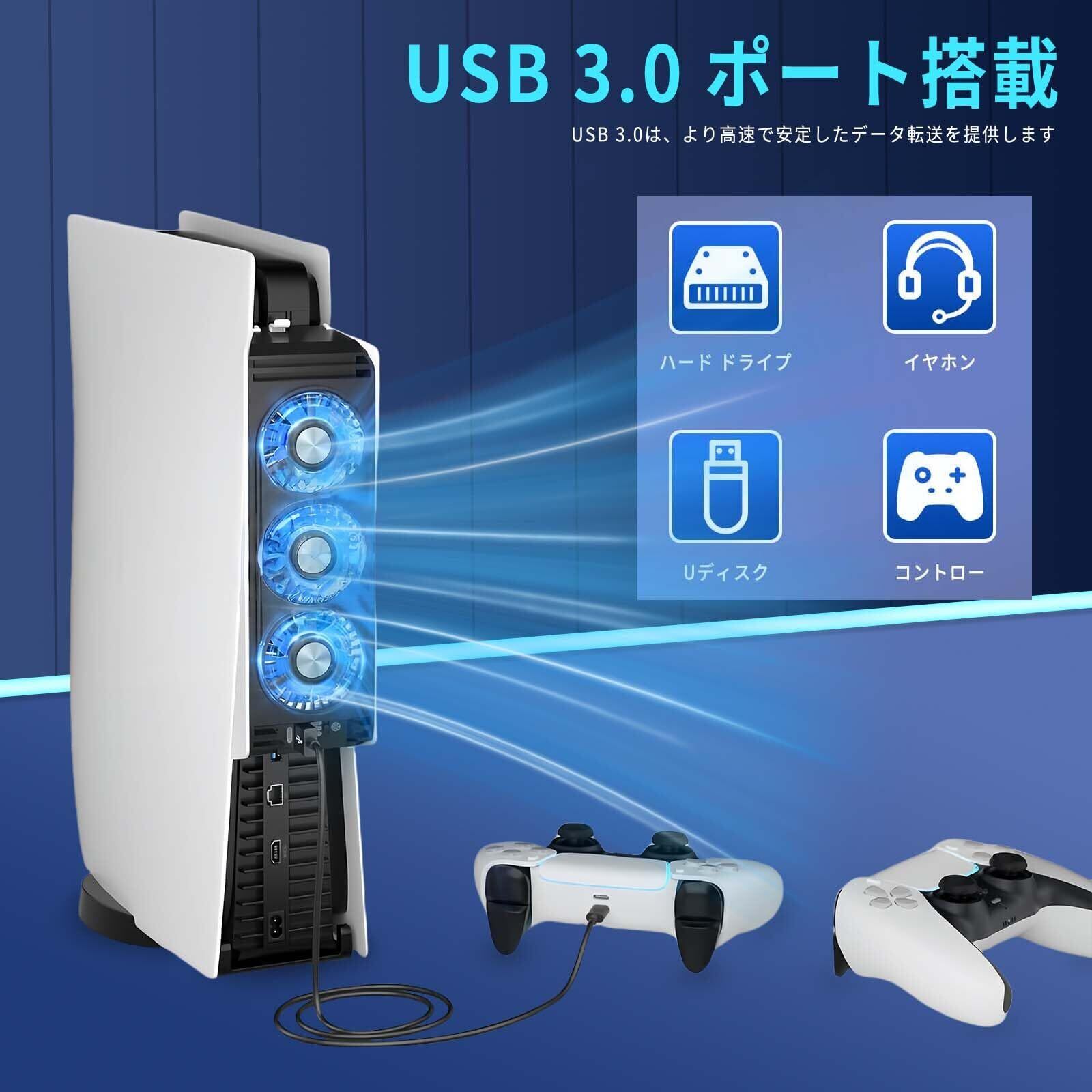 旧型 ps5用 冷却ファン PhyiFlbey 旧型 PS5コンソール用 放熱 プレステ5 冷却ファン2段階風速調整 ps5 クーラー LEDライト付き USB 3.0ポート付 低騒音 PS5 用ディ