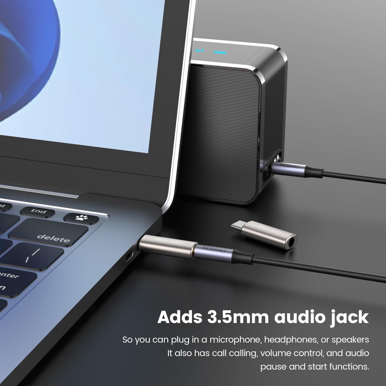 MOSWAGイヤホーンジャツク変換タイイプc、USB Type Cから3.5 mmヘッドホンオーディオアダプタ、ヘッドホン変換アダプタ音量調節/通話/音楽対応iPhone 15/16 Plus Pro