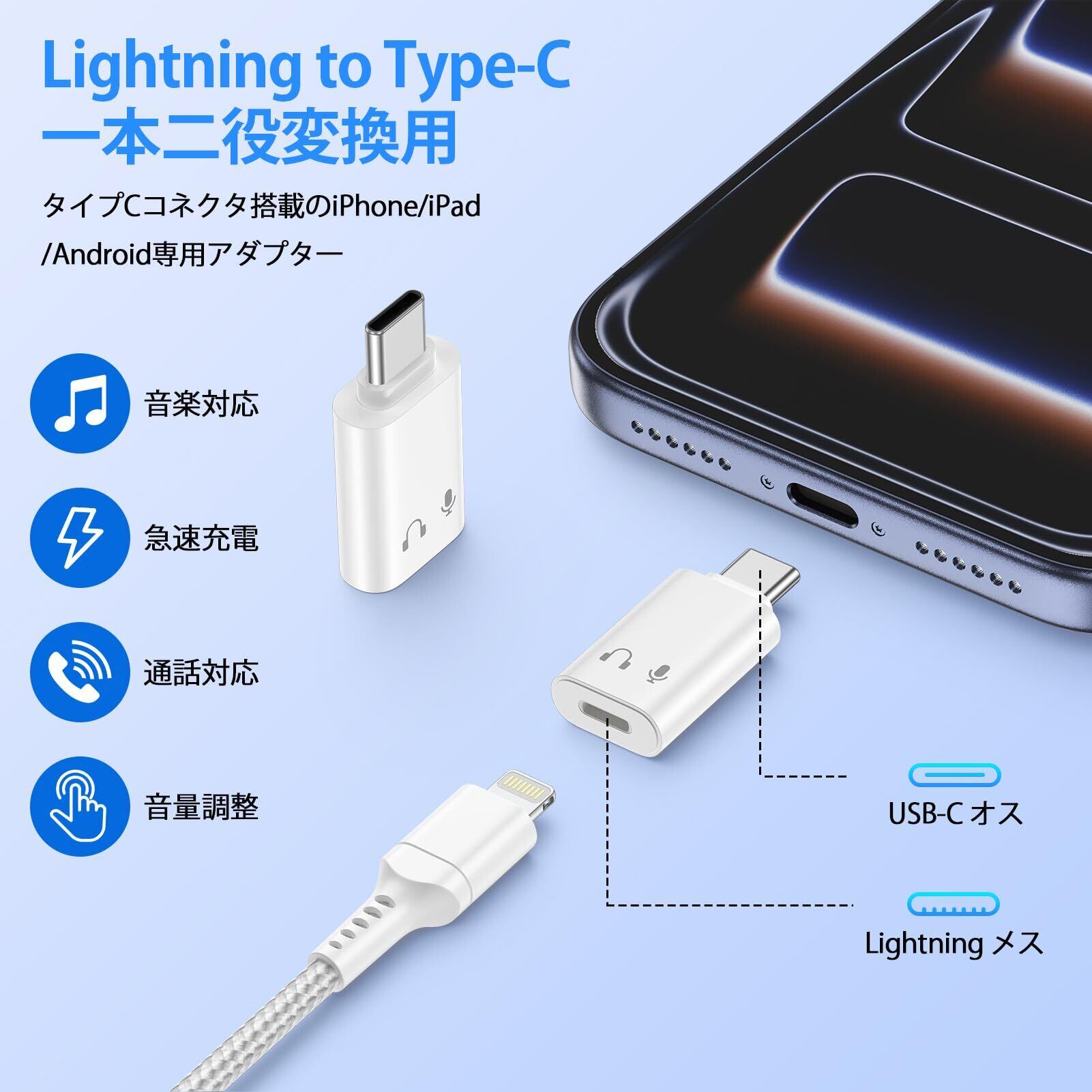 GAEF Lightning to Type-C 変換アダプター イヤホン & 急速充電 2in1多機能 ライトニング からタイプC 変換用アダプタ iPhone 17/16/15/Andriod 両