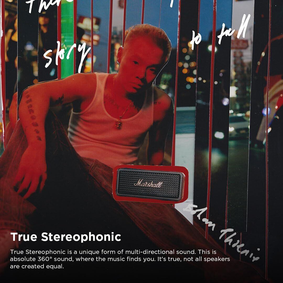 【ステレオフォニック】Marshall独自のマルチディレクショナルサウンドの一形態であるトゥルーステレオフォニックを搭載。Marshall製品でしか体験できない優れた空間音響とバイノーラルサウンドが周囲を包み込み、完全な360°サウンドでどんな空間も音楽で包み込みます。