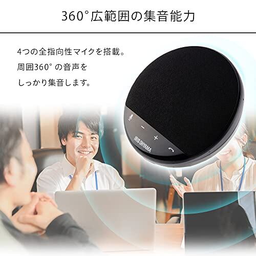 アイリスオーヤマ スピーカーフォン 会議用マイク Bluetooth対応 6時間連続使用 グループモード対応 USB-C接続 オンライン会議 テレワーク 在宅 会議システム ウェブ会議 テレビ会議 黒