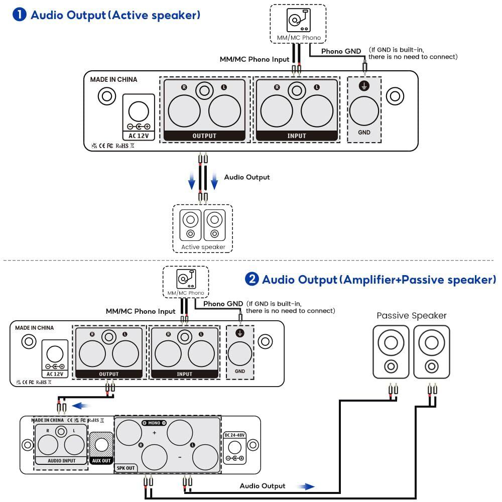 【プロフェッショナル・フォノプリアンプ 】 AIYIMA T3 PRO MMフォノプリアンプは、MM/MCフォノシングル入力のみをサポートします(他のオーディオ信号入力はサポートされていません)。 T3 PROのRCAオーディオ信号出力は、アクティブスピーカーやホームオーディオアンプに直接接続することができます。