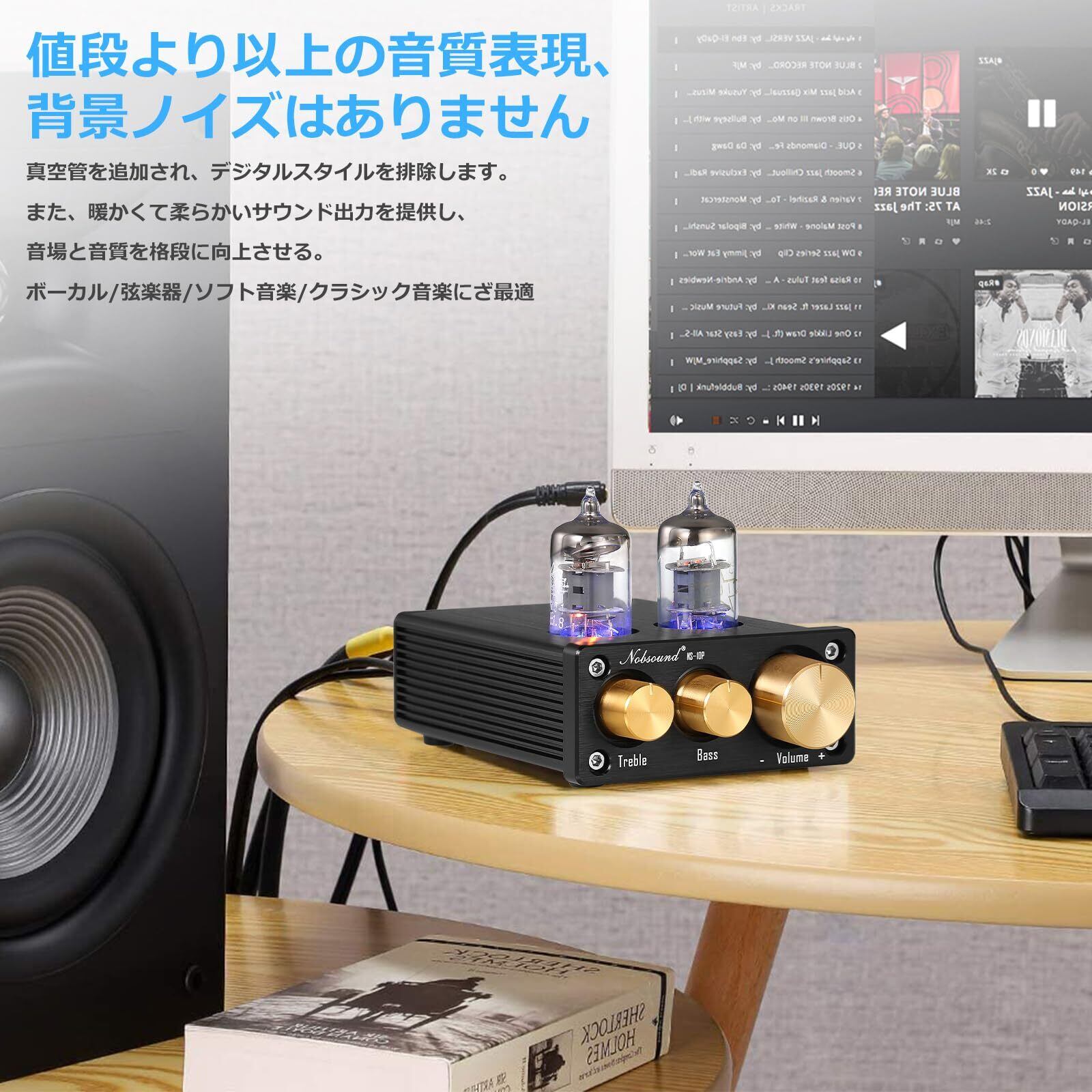 Nobsound NS-10P Mini 真空管プリアンプ Hi-Fi AUX ライン プリアンプ 高低音調整機能搭載
