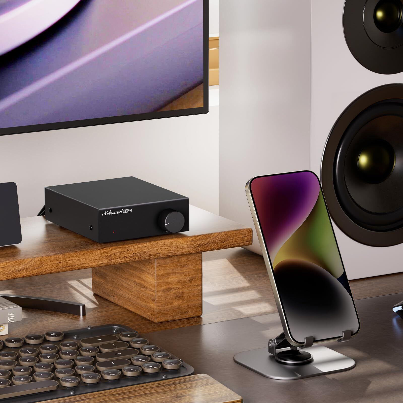 プラグ&プレー設計 & 省スペース性 : 接続から動作まで5分以内の即時セットアップを実現。複雑な設定不要でAV初心者も安心。 設置シナリオ:奥行き10.5cm×幅9cmの超コンパクト筐体(3.54×4.13インチ)が、デスクマットの隅や本棚の隙間にも収納可能。金属筐体の放熱性と340gの軽量さを活かし、スタンドマウントスピーカーと併用すればワンハンドで移動できるポータブルオーディオシステムに変容。エンターテイメント機器の裏側設置でも通気を確保。