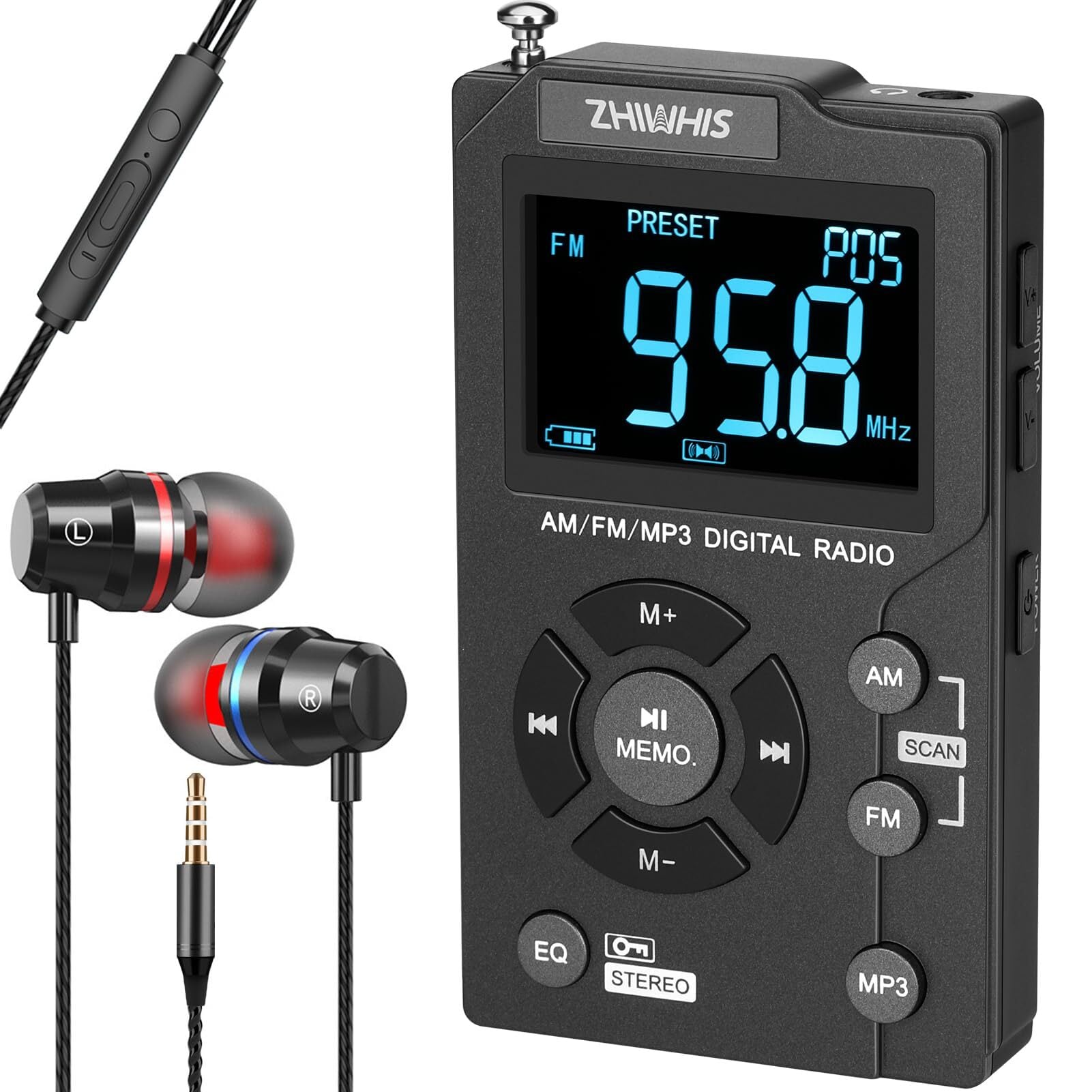 ZHIWHIS ラジオ小型 MP3/FM/AM/ワイドFM対応 MicroSDカード対応 600mAh/大画面/プリセット/キーロック USB-C充電式 携帯DSPステレオ受信機 ポータブル軽量 コン