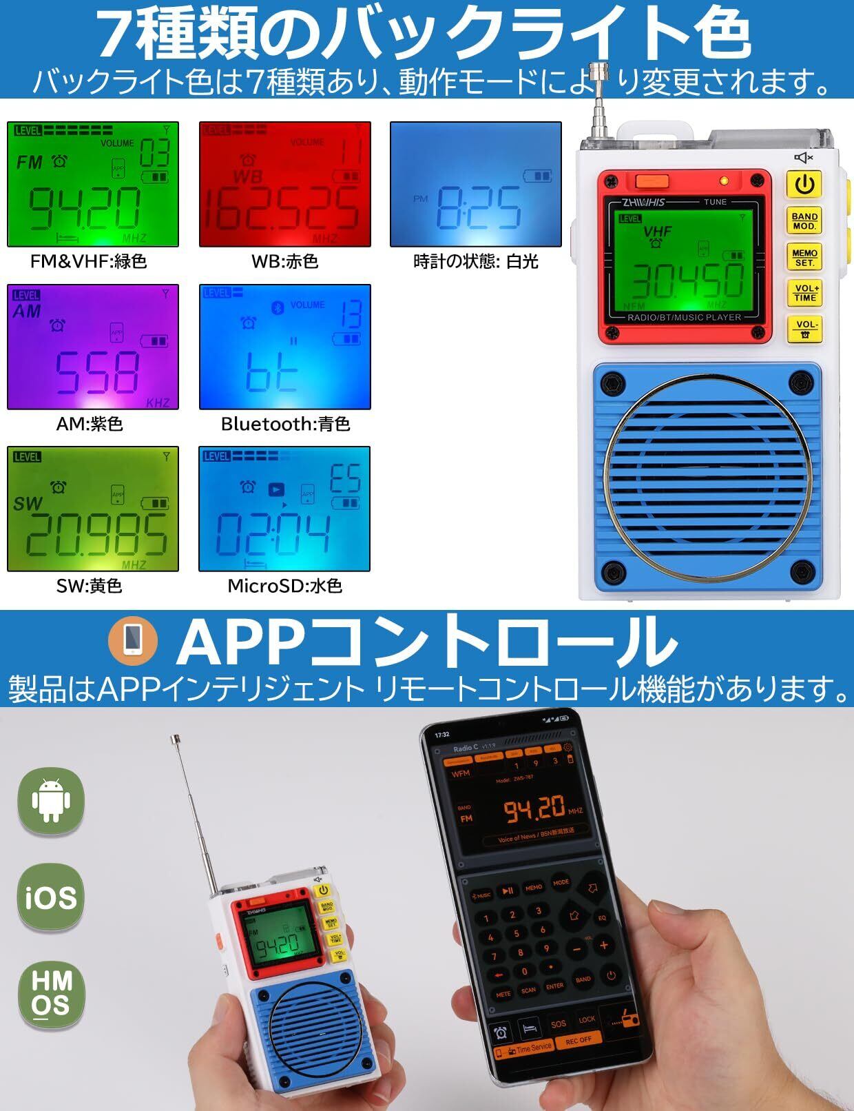 ZHIWHIS ラジオ小型防災 Bluetoothスピーカー MicroSDカード対応 FM/中波/短波/VHF/ワイドFM 懐中電灯 SOSアラーム ラジオ録音/7種類のバックライト色/APPコント
