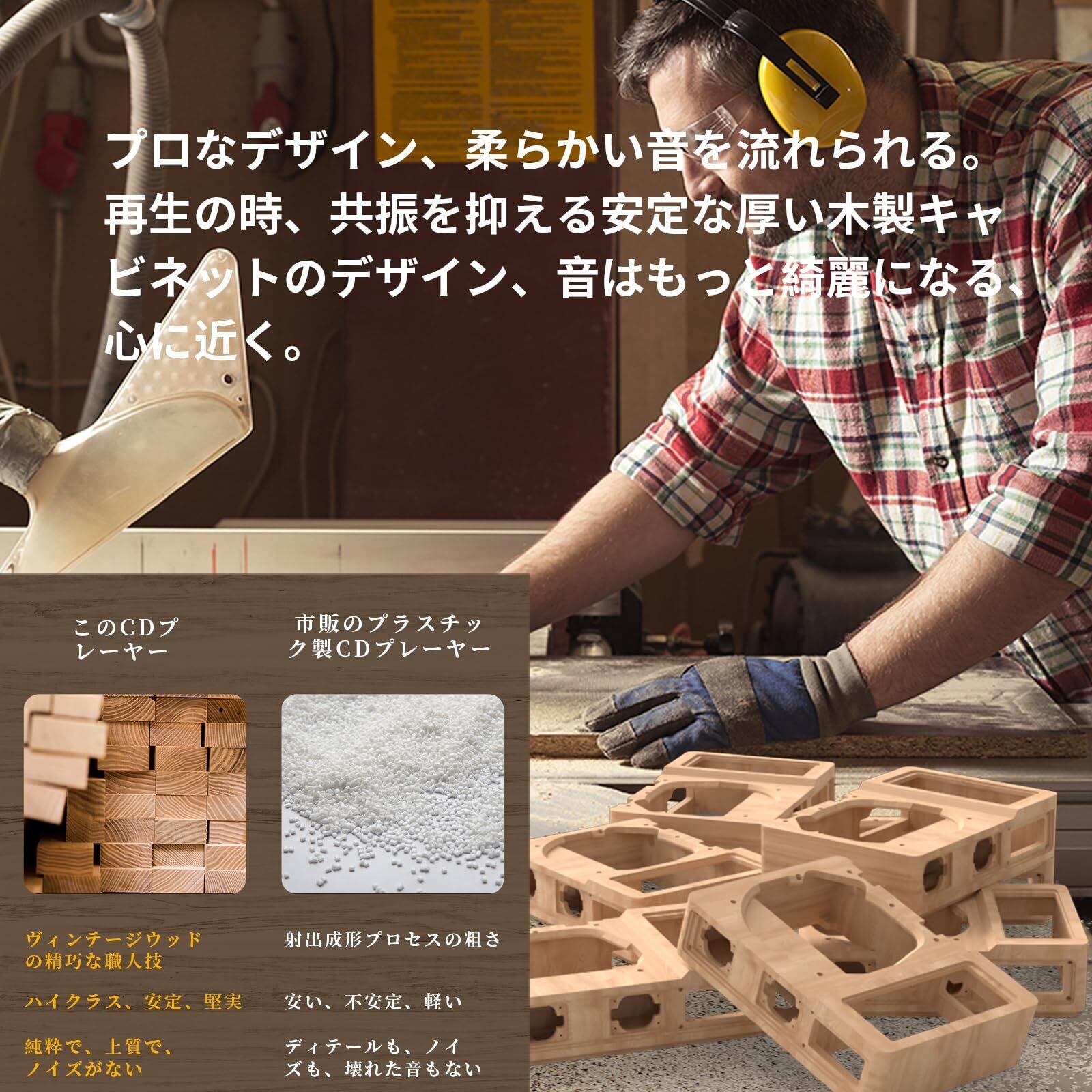 【高音質スピーカー内蔵&ASP防振機能付き】プロなデザイン,再生の時、共振を抑える安定な厚い木製キャビネットのデザイン、ボトム・バス振動板,強化された低域の質感。クリアな音質で、音楽の細かい部分までくっきり聞こえます。音はもっと綺麗になる、心に近く。ASP防振機能が付きで、振動または衝撃を受けた場合は、CDディスク60秒、MP3ディスク120秒のデータを蓄積でき、安定した高音質な再生を手軽に楽しめます。