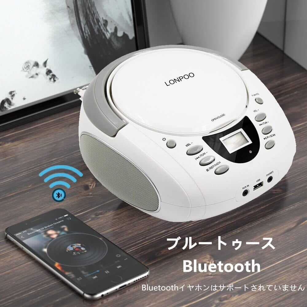 LONPOO ステレオ cd プレーヤー bluetooth FMラジオ ブルートゥース USB/AUX入力 ヘッドフォンジャック LCDディスプレイ ポータブルcdプレーヤーコンパクト小型 語学学習