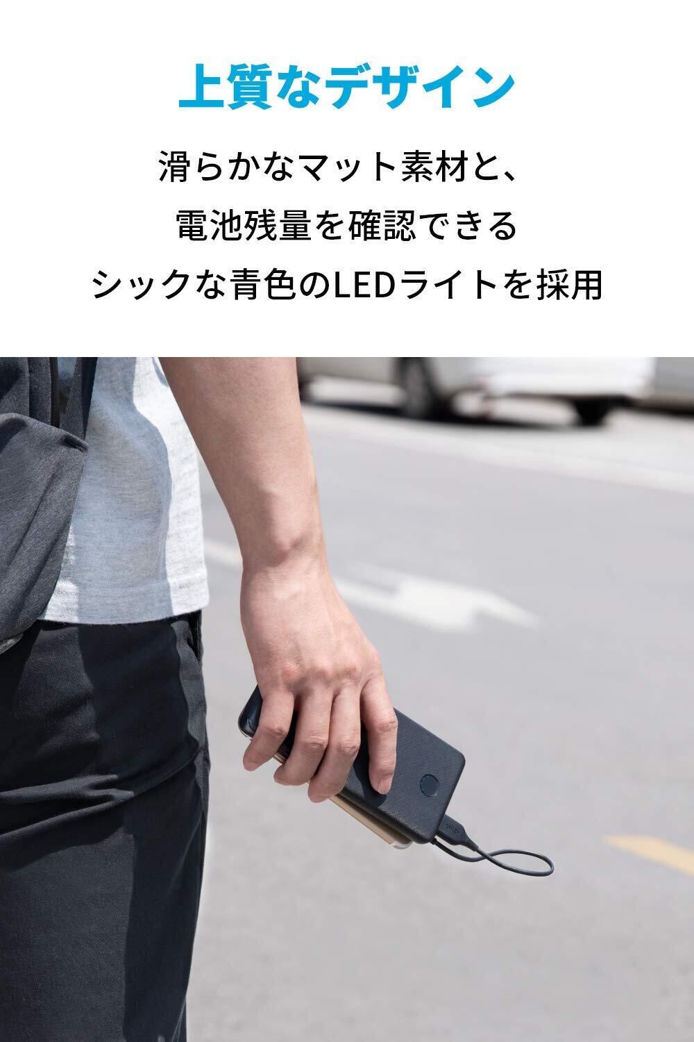 上質なデザイン:なめらかなマット素材と、電池残量を確認できるシックな青色のLEDライトを採用。内部構造からデザインに至るまで、全ての箇所をプレミアム仕様に仕上げた薄型モバイルバッテリーです。