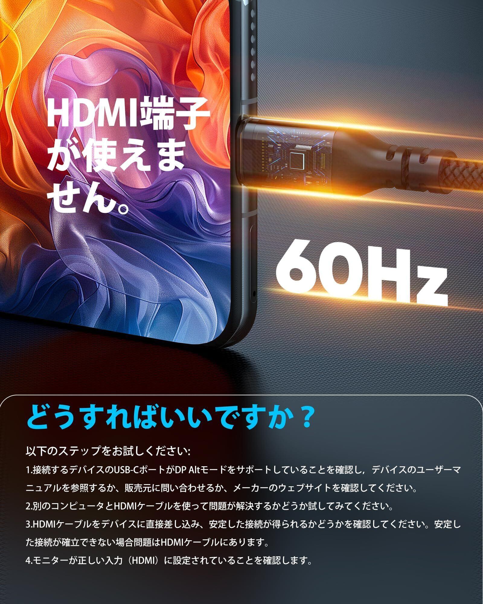 【プラグアンドプレイ】ほかの設置が不用、1本で簡単に画面を拡張したり、他のモニター/TVに転送したりできます。ビデオ用のHDMI対応TV/モニター/プロジェクターと互換性もあります。(ご注意:Highwings usb c hdmiケーブルは単方向です、usb type-cからHDMIのみをサポートし、逆での使用できないです。)