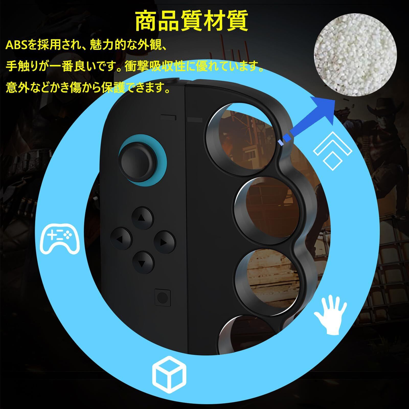 【商品質材質】ABSを採用され、魅力的な外観、手触りが一番良いです。衝撃にも強い、耐熱性もよく、意外などかき傷から保護でき、耐用年数を長くするようにします。軽くて精密なバランス部品により、コントローラーを格好いいです。