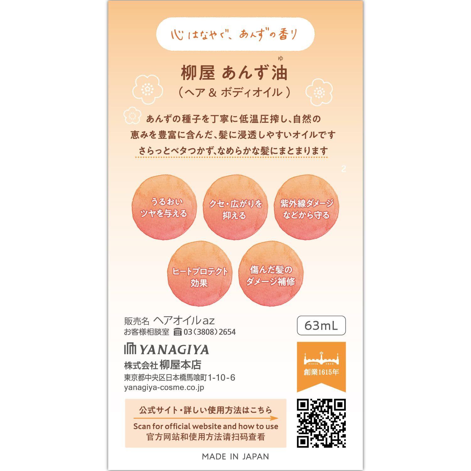髪へ、ボディへ。100%植物由来の柳屋あんず油。フワッと香りさらっとまとまり、ツヤのある髪に導きます。ヘアだけでなく、ボディケア・ネイルケアなど幅広く保湿ケア。