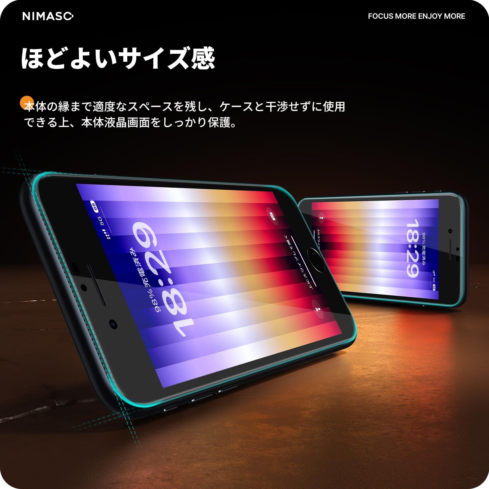 NIMASO ガラスフィルム iPhone SE 第3世代 (2022) / iPhone SE2/8/7 用 全面保護 フィルム フルカバー ガイド枠付き NSP19A23