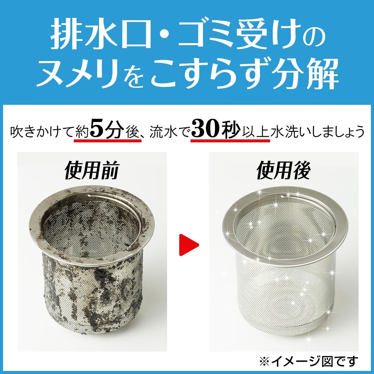ヌメリに触ることなく、こすり洗い不要