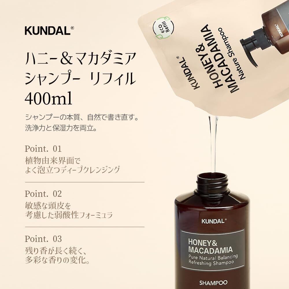 【ハニー&マカデミア】#弱酸性のクンダルヘアケアは、洗った後の頭皮の健康を考えた、マイルドな使用感が魅力です。#ハチミツエキスとマカデミアシードエキス配合で、頭皮に潤いを与え乾燥から守ります。