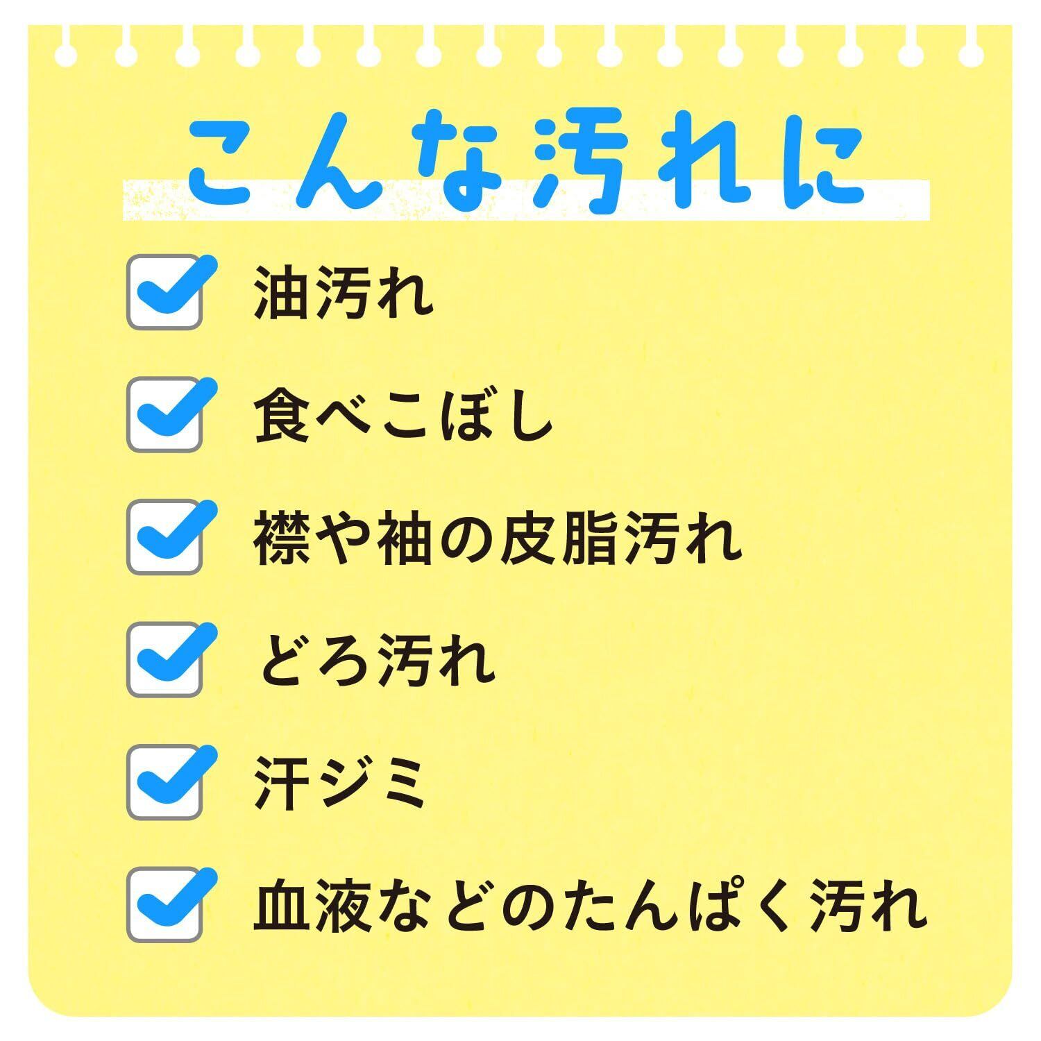 5種(皮脂、油、食べこぼし、飲みこぼし、血液、泥)の汚れにこれ1本。