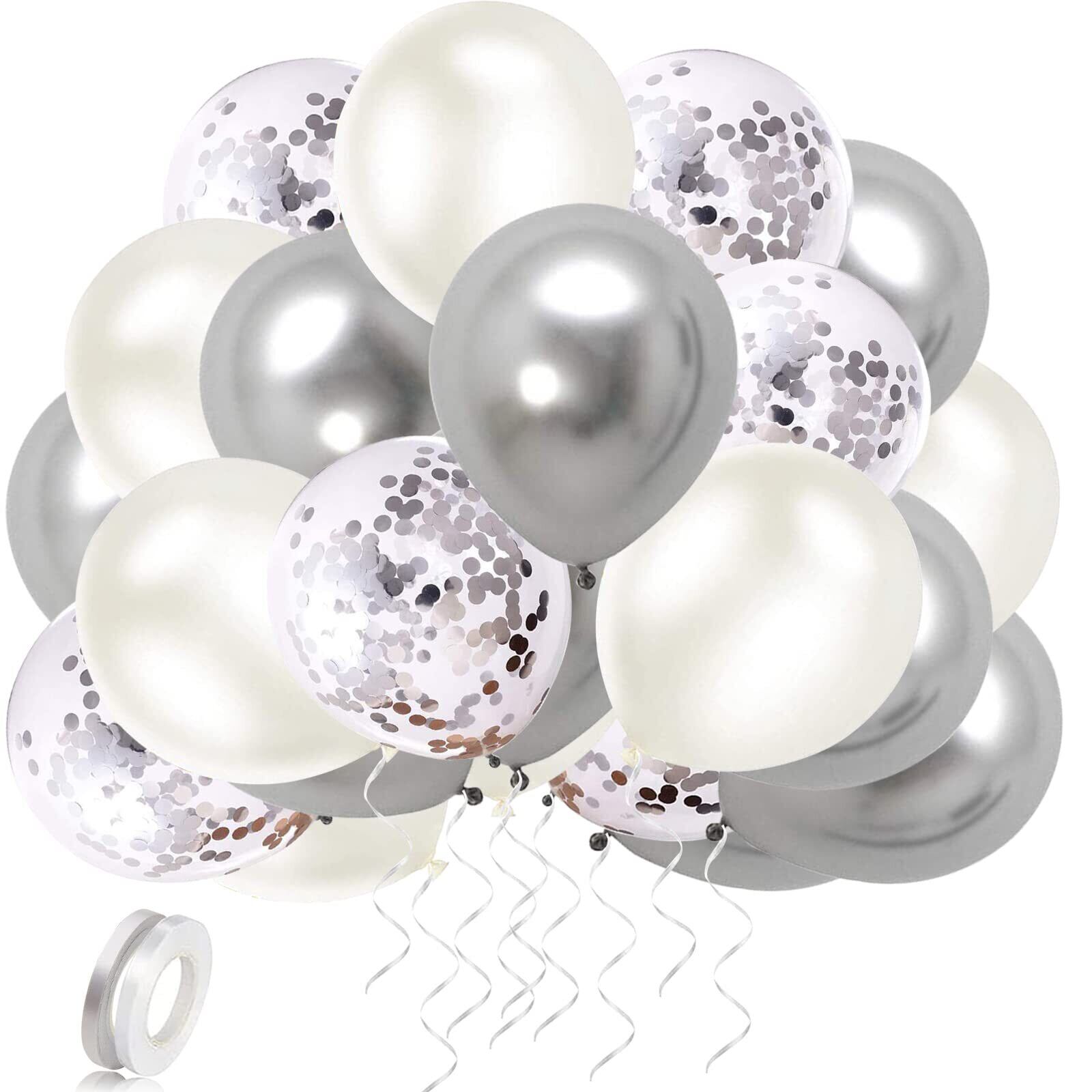 EXGOX 90個 風船 バルーン シルバー お誕生日 ゴム風船 セット 飾り付け happy birthday バルーン 吹雪入れ 誕生日会 母の日 バースデー 卒業 開店 記念日 結婚式 成人式