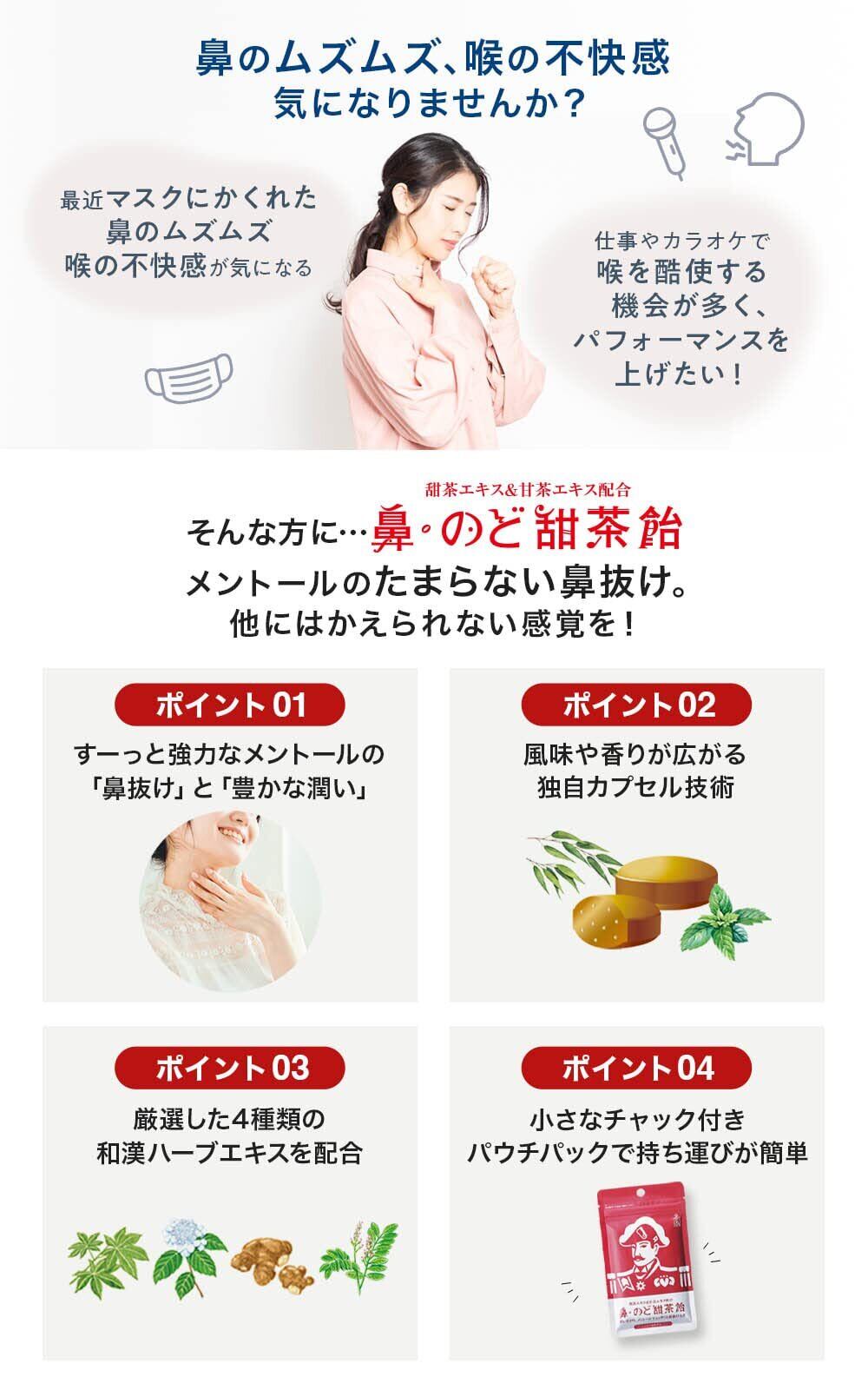 【こんなお悩みありませんか?】マスクにかくれた鼻のムズムズ 喉の不快感が気になる/仕事やカラオケで喉を酷使する機会が多く、パフォーマンスを上げたい!/普通の、のど飴では満足できずもっと爽快感が欲しい