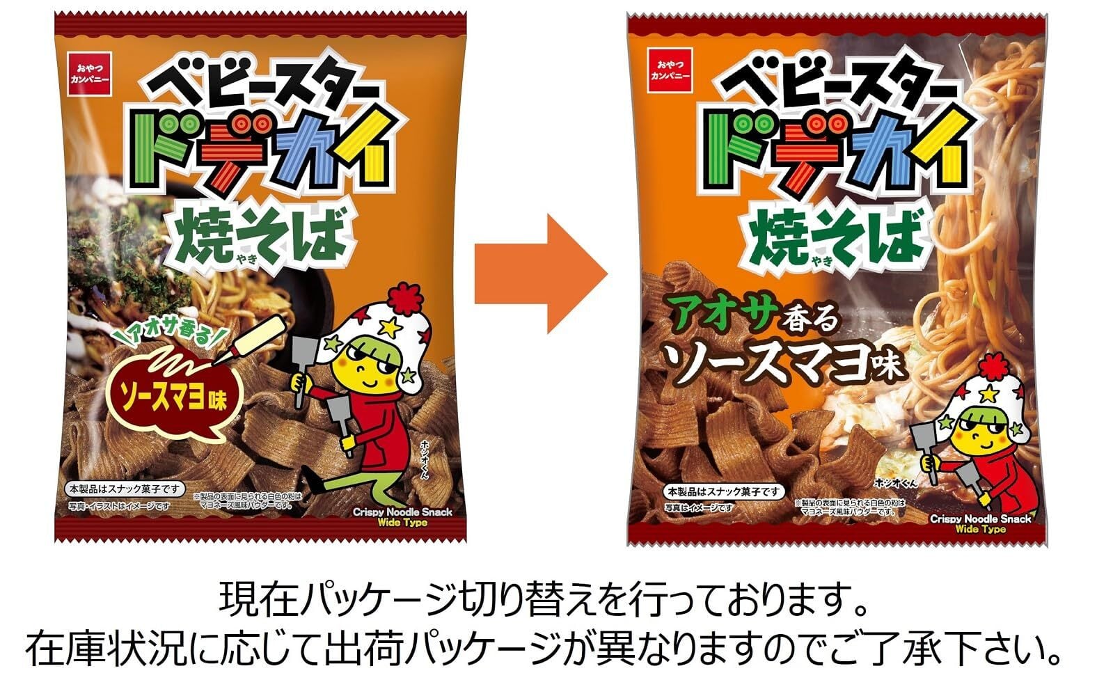 パリッ! サクッ! とした楽しい食感のドデカイ焼そばソースマヨ味です。