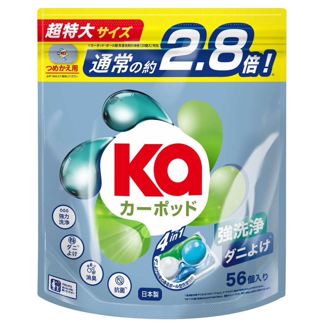 洗濯洗剤 カーポッド ダニよけ ジェルマジックボール 部屋干し 時短 便利 抗菌 柔軟 柔軟剤入り ギフト Ka Pod anti dustmite (詰替56粒) 大容量