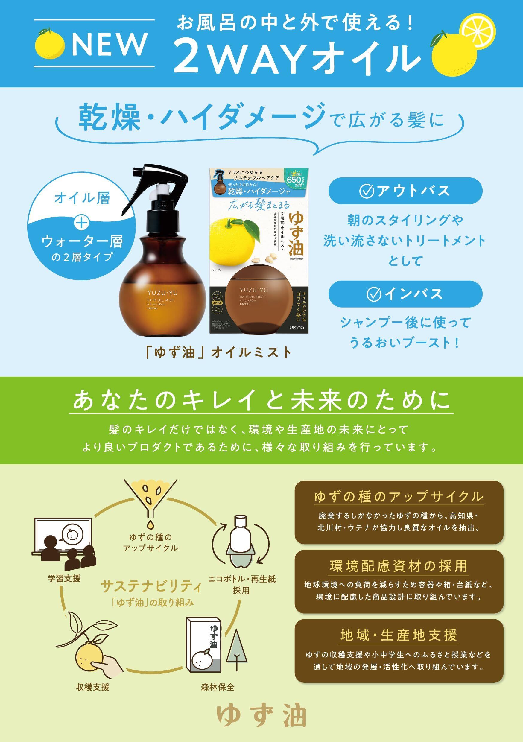 国産ゆず油(保湿成分)配合。振って使う2層式無添加*トリートメントミスト。