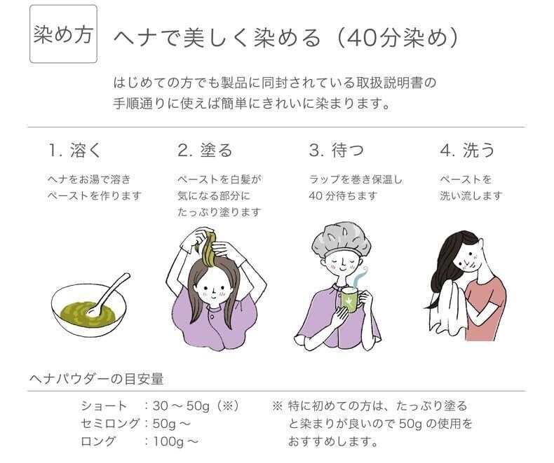 ※肌に合わない時は、ご使用をお止めください。染毛剤でかぶれたことのある方は特に注意してください。 ※植物アレルギーがある方、今までに少しでもアレルギーを引き起こしたことのある方、敏感肌の方は専門医にご相談の上、ご使用ください。 ※植物100%の白髪染めですが体質や体調により、初めての方、またこれまで問題ない方でもアレルギーを引き起こす場合がございます。ご使用2日前に必ずパッチテストを行ってください。
