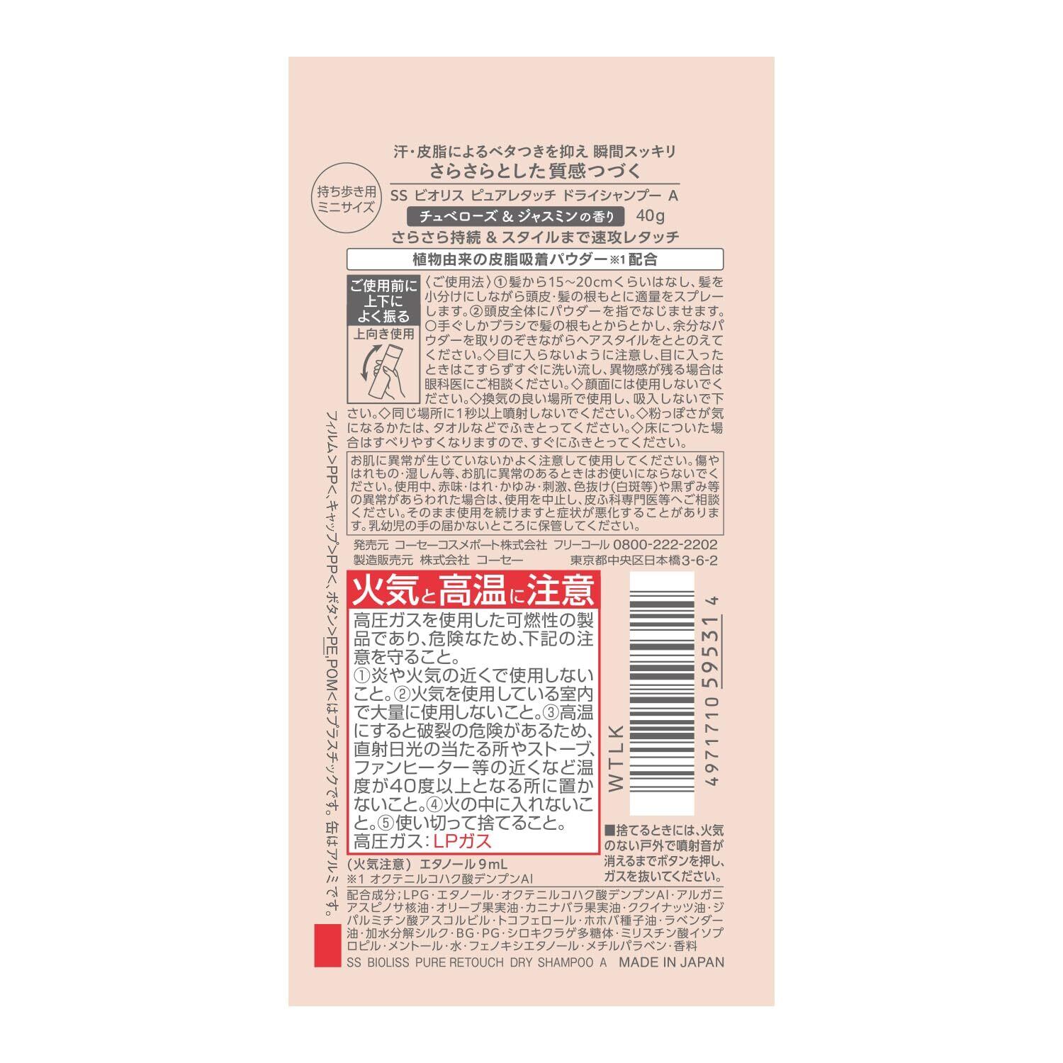 SALON STYLE(サロンスタイル) ビオリス ピュアレタッチ ドライシャンプー (チュベローズ&ジャスミンの香り) ミニサイズ