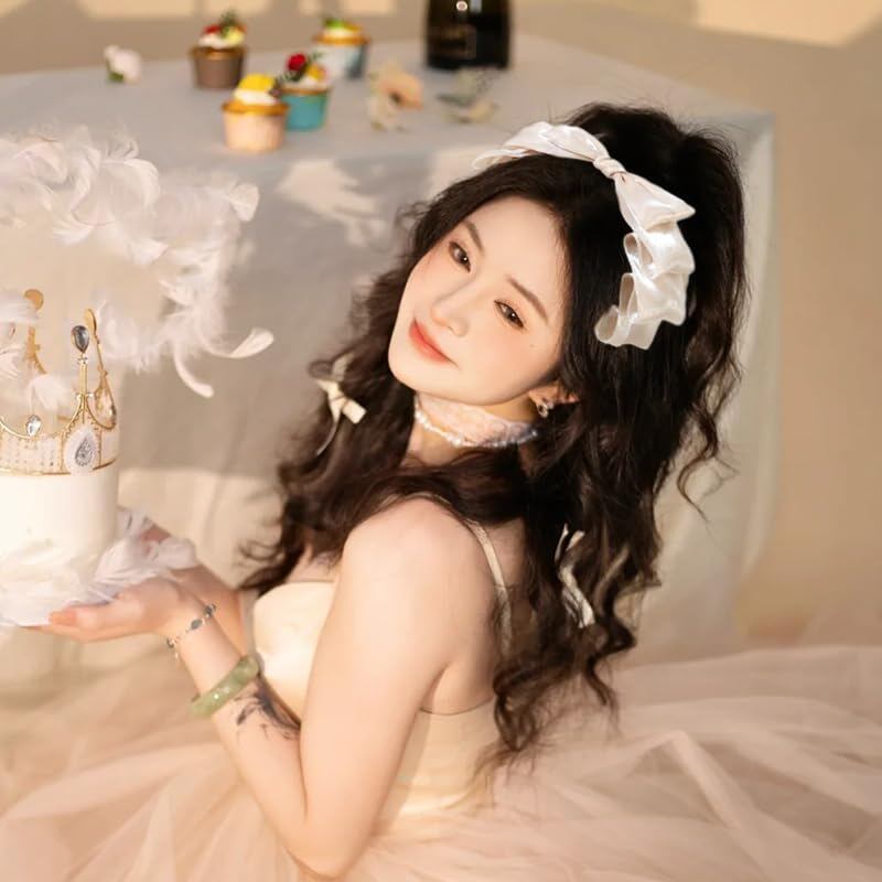 リボンカチューシャ ロリータ風 lolita カチューシャ 髪飾り かわいい お姫様 写真を撮る ダンスパーティー ティーパーティー 学園祭 夏祭り (シャンパン色)