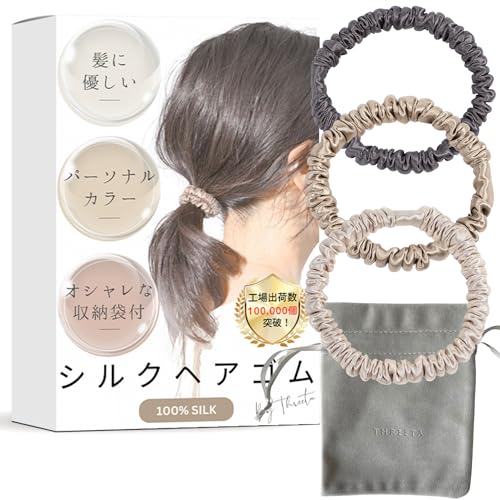 ✅【検査済みの100%高品質シルク♪】国内および国外で実施された厳格なW検査により、本物のシルク100%であることが証明されています。また、累計出荷数100,000個以上生産されている工場で品質も安心。シルクは髪と同じタンパク質成分でできており、髪の負担が少なく、髪のダメージを抑えます。さらに髪に絡みにくいので結んでいる時や外す時に痛みを感じにくく、跡がつかない等良い点がたくさん。トータルビューティーアドバイザーも絶賛しているTHREETAのシルクヘアゴムで、シルクの素晴らしさを是非実感してみてください♪