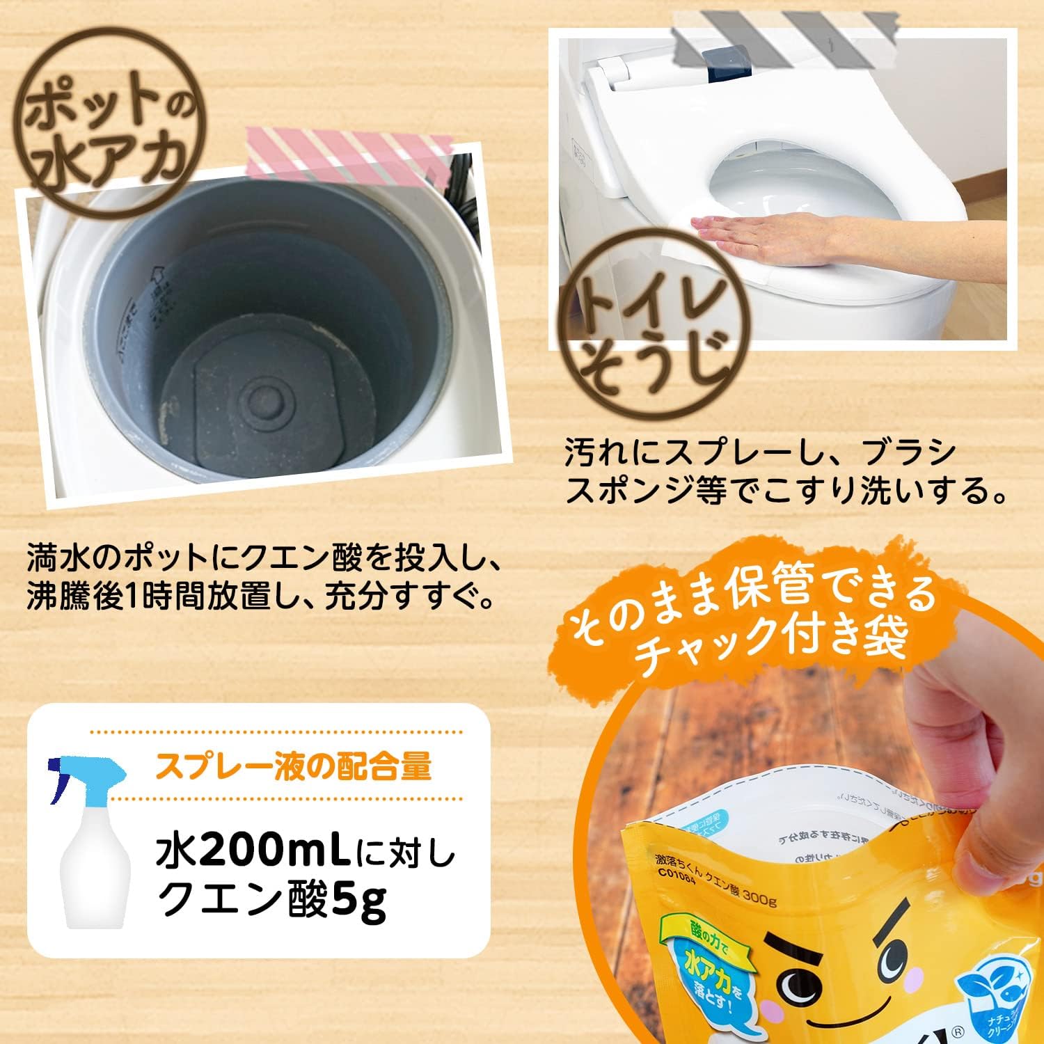 レック 【 激落ちくん 】 の クエン酸 粉末タイプ 300g /酸の力で水アカを落とす/電気ポット内、シンク、トイレ汚れにも/