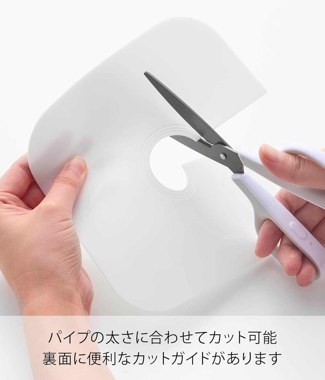 洗濯機の排水トラップのホコリや髪の毛などの汚れを防ぐカバーです。 裏面にはカットしやすいカットガイドがあるので排水ホースの太さに合わせて簡単にカットできます。 キッチンや洗面台のシンク下の排水管周りにできた隙間からの虫の侵入防止カバーとしても使えます。 切り込みが入っているので排水トラップに簡単に被せることができ、お掃除しやすくお手入れが簡単です。