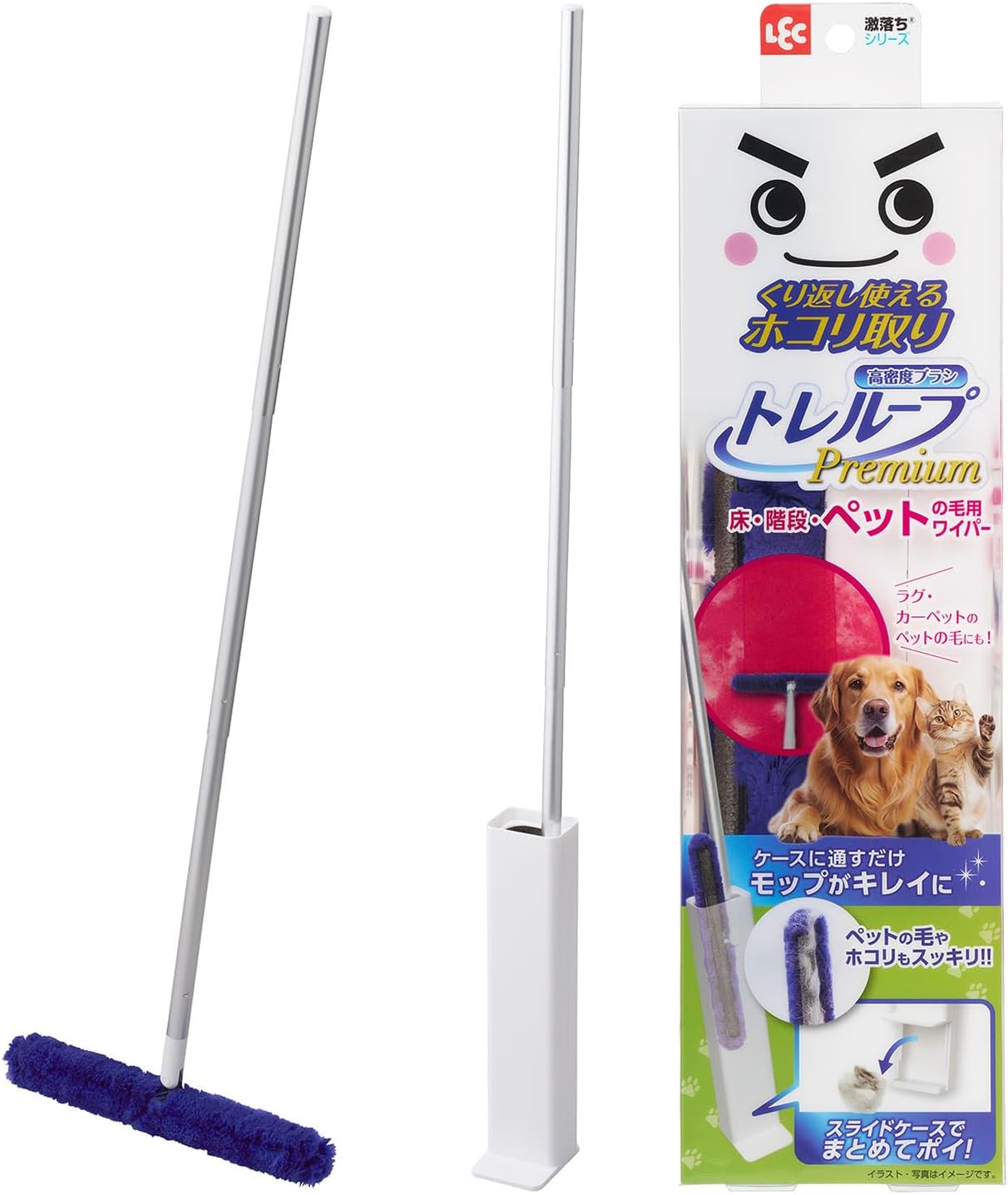 レック 激落ちくん 高密度ブラシ トレループ Premium (床・階段用タイプ ・ ペットの毛用) くり返し使える ホコリ取り/ケースに通すとモップがキレイに/スライドケースでホコリをまとめて捨てら