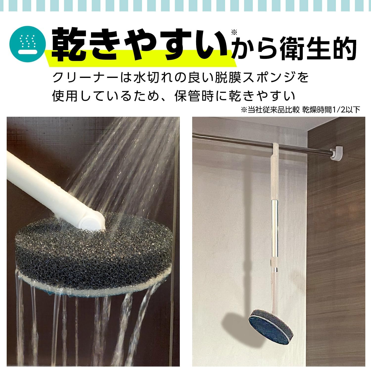 クリーナーは水切れが良く乾燥しやすい脱膜スポンジを使用しています。