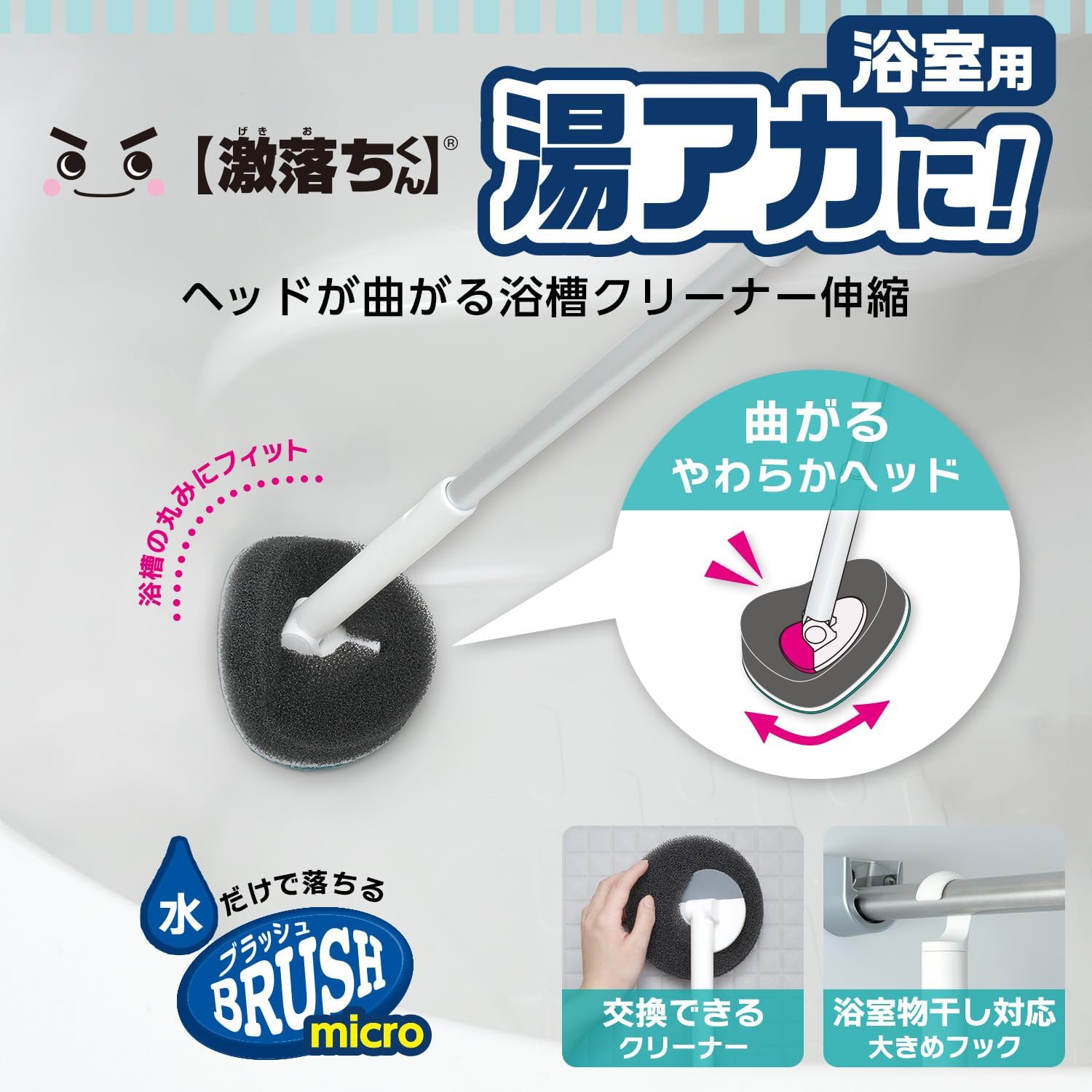 レック 激落ちくん ヘッドが曲がる 浴槽クリーナー (伸縮タイプ) 超極細やわらかブラシ