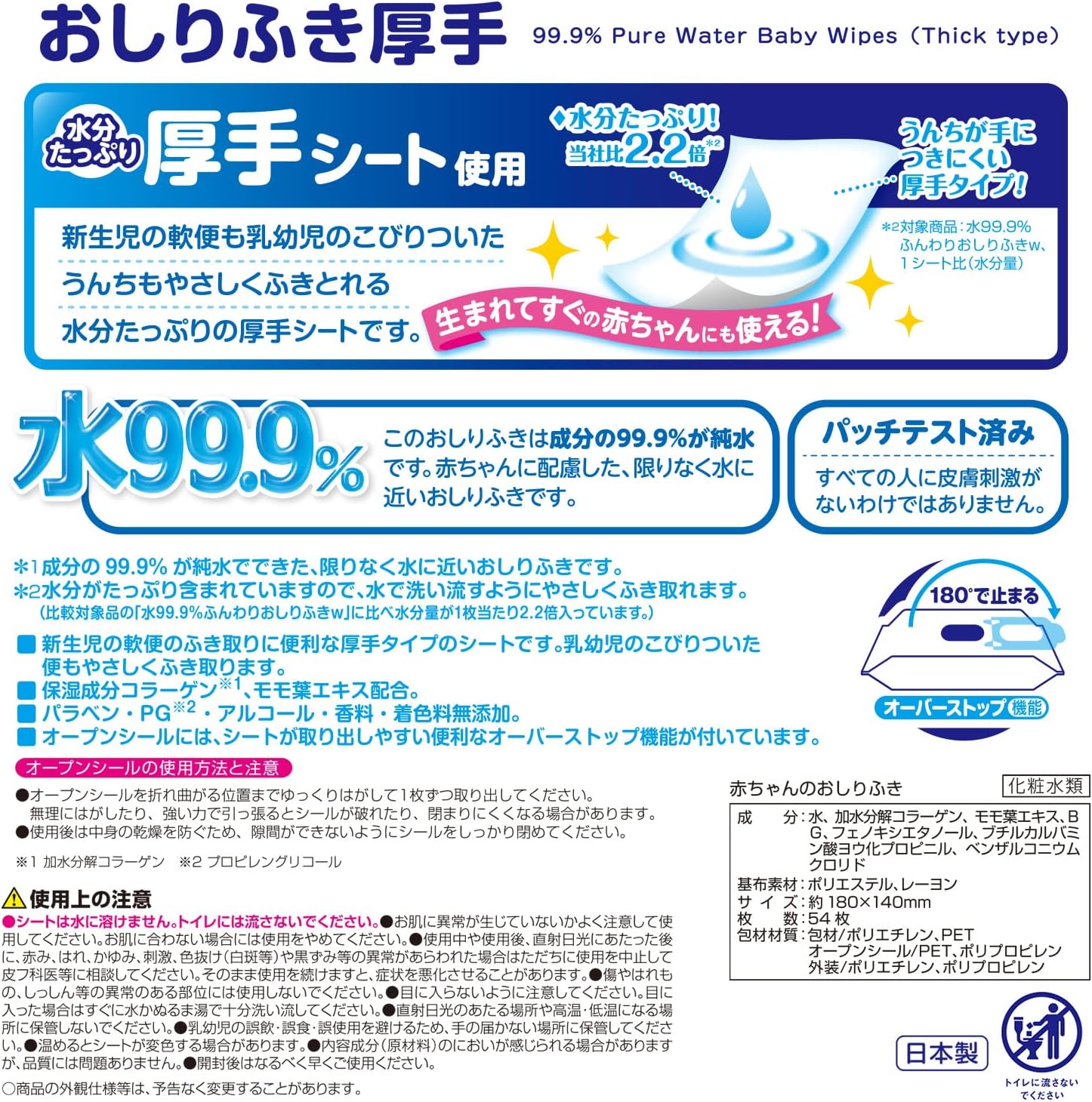 純水 99.9% 水分たっぷり 厚手 おしりふき 54枚×15個 (810枚) コラーゲン モモ葉エキス W保湿成分配合 日本製